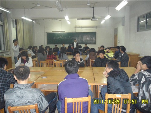 首先朋辈志愿者介绍了此次活动的目的,随后优秀学长依次做了自我介绍,并向11级新讲述了自己进入大学一年多来的收获和感触,认真总结了自己的学习生活经验。接下来11级新生向优秀学长提出了自己进入大学以来所遇到的各种困惑,学长都做了仔细全面的回答,并根据自身经历给新生提出了相应的解决办法。活动在轻松愉快的氛围中进行。最后学长向新生们提出了要求,希望他们意识到学习的重要性,不要荒废时光。新生们表示通过此次活动自己受益匪浅。