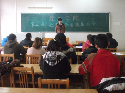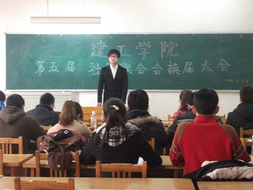 3月1日下午,建筑工程公司社团第五届社团联合会换届大会在12号楼302教室拉开帷幕。团总支副书记孙兆凤、社团指导老师张燕丽、社联主席孙运志等人出席并担任了此次大会的评委。