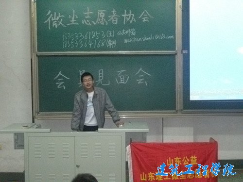 据了解,微尘志愿者协会虽是新兴社团,却格外受同学们欢迎,社团也不断更新理念,扩大服务范围,为想要奉献爱心的同学提供了志愿服务的舞台把关怀带给社会,把爱心送给他人,把文明传向你我”的责任,积极投入到各项志愿活动中去。刘洪超用PPT把协会情况及志协骨干成员向新加入的会员做了介绍,加深他们对志协的认识。然后,各部部长进行了简短的发言,依次介绍主要发展情况。让各成员与各部长之间沟通交流,以便在今后的工作中,各部能够密配合。