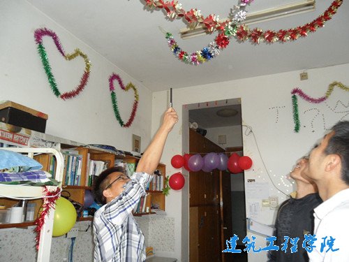 参观时,首先映入眼帘的是雅室名称,诗墨苑、简朴寨,清馨斋等,既充满诗情画意,又不是简朴之风。宿舍内的装饰大多以节约简洁为主,充分利用资源,自己动手剪贴,有清新淡雅的自然风景,有生机盎然的校园小径。特别是城市规划专业的同学,发挥自己的特长,将手绘的素描画,水彩画张贴,达到装饰的效果。
