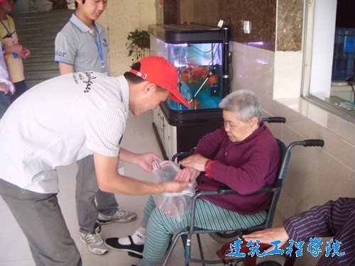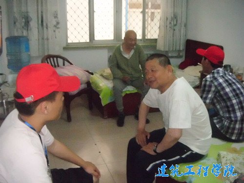 下午一点半,同学们准时来到老人公寓,为老人带去水果等慰问品,并围坐在老人们身边,与老人们交流聊天,询问他们饮食、作息、睡眠质量等生活方面的情况,了解老人们过往的生活经历。在与老人交流的过程中,有些同学还发挥个人特长,为老人们唱了多首红歌。还有的同学在细节上关爱老人,推行动不便的老人晒太阳,扶老人散步,活动筋骨,现场的氛围和谐而温馨。最终,同学们在不舍中离开了老年公寓,此次活动也圆满地画上了句号。