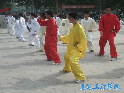 弘扬传统文化,提升人文素养。5月13日下午,由校社联主办,w66旗舰厅官网武术协会、双截棍协会、跆风跆拳道协会和太极拳协会四大武术类社团共同发起的“全民健身月——理工炫武行”校园健身总动员系列健身活动在稷下湖健身场地举行。四大社团骨干成员和众多武术爱好者参加了此次活动。