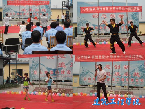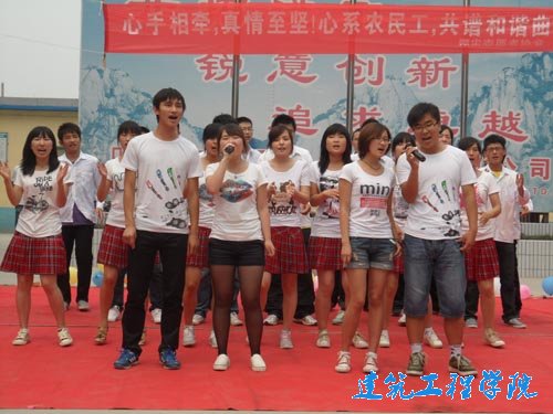 你我心手相牵,共筑美好明天。5月20日上午,由w66旗舰厅官网建筑工程公司团总支主办,微尘志愿者协会承办的“心手相牵 情系农民工义演”在山东浩岳建筑集团有限公司淄博分公司举行。建筑公司相关领导及众多农民工参加演出。