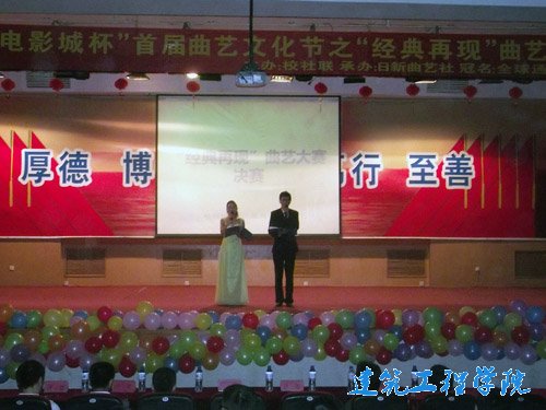 5月21日晚,由校社联主办,日新曲艺社承办,全球通电影城冠名赞助的首届曲艺文化节之“经典再现”曲艺大赛决赛在3号报告厅举办,淄博市曲艺家协会王旭、笑缘广告公司经理冯国章、第八届日新曲艺社副团长张昆、沈峰,第九届日新曲艺社副团长翟玉川、亓益明担任评委。