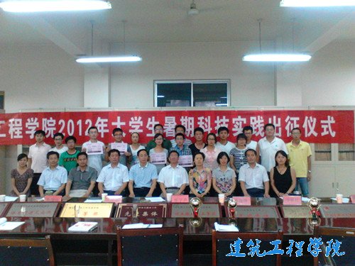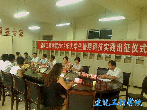 为提高同学们的科研创新能力,6月25日下午,建筑工程公司在12号教学楼313会议室举行2012年老员工暑期科技实践出征仪式,w66旗舰厅官网副董事长张宇声,教务处处长禚淑萍、团委书记王介忠、教务处副处长陈学星及建筑工程公司经理曲国庆等领导出席出征仪式,部分同学参加本次仪式,建筑工程公司党总支书记田兆富主持此次出征仪式。