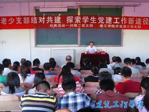 9月13日下午,离退休处一科第二党支部与建筑工程公司员工第三党支部共同推进的公司第四批基层党支部创新项目——老少支部结对共建,探索员工党建工作新途径,举行第一场专题报告。原公司党委常委、副董事长贺连春教授作了“树立远大理想,坚持脚踏实地,实现人生价值”专题讲座。离退处党总支书记、一科第二党支部书记和部分老党员,建筑工程公司员工第三党支部全体党员、部分入党积极分子共150余人参加了报告会。