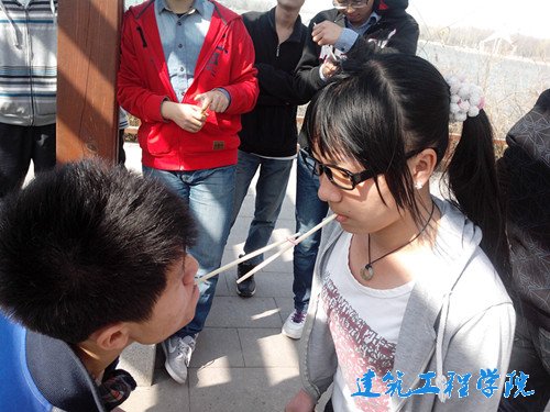 上午,同学们准时到达植物园之后,在本地同学刘晨的带领下游览了植物园的一些景点。随后大家在一个凉亭中做集体游戏,同学们分成四组,用嘴上叼住的筷子传递小皮筋,大家热情洋溢,凉亭中充满了欢声笑语,时而有路人经过,驻足观看,也被同学们的快乐所感染。