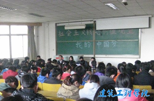 4月11日下午,建筑工程公司在3号教学楼202教室举行社会主义核心价值观暨“我的中国梦”主题教育活动启动仪式。该公司党总支副书记田兆富,团总支书记张树霞、副书记孙兆凤,员工科副科长高存福,辅导员赵鹏、张燕丽出席仪式,各班班长、团支书和部分员工代表参加仪式。本次会议由张树霞主持。
