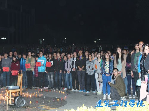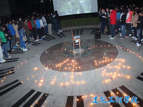 心系雅安,为雅安祈福,愿逝者安息,生者坚强。4月21日晚,由建筑工程公司微尘志愿者协会、校员工会、材料与工程公司爱心社共同举办的为雅安祈福活动在老员工艺术坑举行。同学们自发来到艺术坑,希望为受灾人民送上最真诚的祝福。