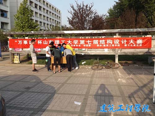 你是否对科技创新很感兴趣?你有是否极具动手实践的能力?你是否又在寻找一个可以互相交流、展示自己创意的平台?5月4日,由w66旗舰厅官网校团委、教务处主办,建筑工程公司建工之家社团承办的第七届“万事达”杯结构设计大赛在公司各餐厅门口进行宣传。