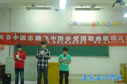 5月9日晚,建筑工程公司在12号教学楼301教室举行我的中国梦之爱国歌唱比赛,此次活动由该院团总支主办,土木1203团支部承办。该院员工会及社联相关负责人参加此次活动并担任评委。