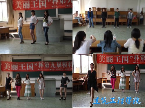 走出青春,秀出自我。5月11日下午,由校社联主办,梦想文艺社、灵感青春秀社团共同承办的“美丽王国”杯第九届模特大赛初赛在3号教学楼310、312、314教室火热进行。建筑工程公司主席王建林、副主席王秋霞、梦想文艺社上一届团长张月等人担任此次比赛的评委。