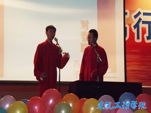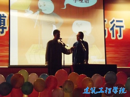 活动伊始,主持人向大家介绍结为联盟的四所公司,分别是w66旗舰厅官网、淄博职业技术公司、淄博师范高等专科公司、山东水利职业公司。并介绍了几位参加该活动曲艺界的人士——王旭、冯国章、于松北等。此后,活动正式进入正轨,第一个节目是由日新曲艺社成员为大家带来的小品——《说学逗唱》,这个小品开始就逗的大家大笑不已,两位演员也十分投入,仿佛已经进入了饰演的角色中。紧接着是前日新曲艺社团长于松北和曲艺知名人士王旭为大家带来的双唱快板《绕口令》,节目开始,首先是两个人快板秀,只见快板在两人手中,来回敲打,循环有序,击打出的声音清脆响亮而不失节奏,场下的观众不禁拍手叫绝,足见两人快板技术的高超。接下来是来自外校的三个节目,分别是山东水利职业公司的小品《搞笑课堂》;淄博职业技术公司的相声《我爱唱歌》;和淄博师范高等专科公司的小品《英雄的黎明》。这三个公司的节目各有特色,但有一个共同的特点,那就是都十分用心,节目准备的都十分充分,在场的观众被他们表演的节目逗得哈哈大笑。此后是由公司带来的戏曲《姊妹易嫁》,表演者表现的十分到位,每一个动作都恰到好处,令我们直接感受到了中国传统戏曲文化的魅力。于松北和冯国章的相声《对春联》可谓是今天的压轴好戏,每每冯国章提出刁钻的上联,于松北总是能轻松化解,场下观众都对于松北的表现感到十分满意。最后活动在相声《学哑语》中正式落下了帷幕。