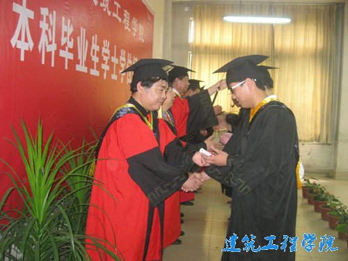 7月2日上午,建筑工程公司在12号教学楼303教室举行2013届本科毕业生学士学位授予仪式。该院经理曲国庆、副经理贾致荣以及各专业系主任亲自为本届441名毕业生正冠拨苏、颁发学位证。