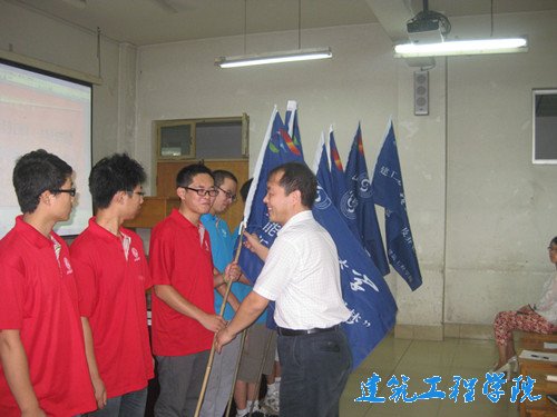 最后,田兆富为所有社会实践团队授予队旗并作动员讲话。他指出,参加社会实践的所有团队成员应端正态度,高度重视和珍惜此次社会实践机会,深入社会基层,勤学苦练,增长才干,为今后的就业打牢基础。同时,他对参加社会实践的同学提出三点希望:一是希望同学们要树立良好的个人形象,在实践中维护母校荣誉;二是希望同学们树立“安全第一”的思想,实践过程中互帮互助,共同成长;三是希望同学们树立 “回报社会、报效祖国”的意识,发扬艰苦奋斗精神,传递正能量。