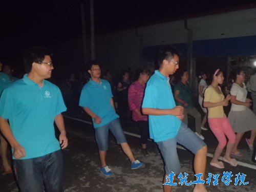 鱼龙三村的村民们在天气晴好的夜晚经常聚集在村委会门前举行跳舞活动,跳有独具特色的适宜各种人群跳的舞蹈,娱乐大家,交流感情。活动开始后,村民们伴着优美的旋律跳起熟悉的舞步,柔美不乏整齐,协调不缺特色,同学们也被现场气氛所感动,不由自主地跟着跳动起来。两段舞蹈之后团队同学也在公司周末舞会音乐的伴奏下,跳起生动活泼青春激昂的兔子舞、恰恰舞、阿拉伯之夜等舞蹈,并教给村民们一起跳,受到村民们的热烈欢迎。