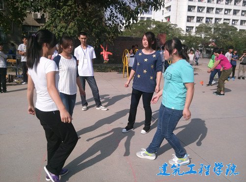 仪式结束后,比赛阵势迅速蔓延开来。首先,进行四人一组的踢毽球比赛,比赛过程中每个小组组员都小心谨慎,注意团结协作,力争以默契度取胜。紧接着,男子组和女子组的跳绳比赛展开。在这关乎两个人得失的比赛中,每个小组中的两个组员或手拉手,或肩并肩,每一次跳跃,每一次摇绳都步调一致,默契十足。整个比赛进行地如火如荼,气氛非常火热。据悉,此次活动剩余比赛项目拔河比赛将于明日下午举行。