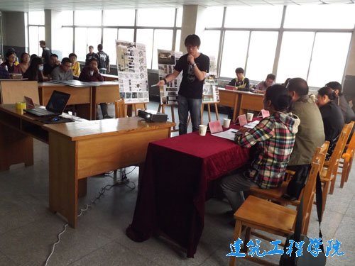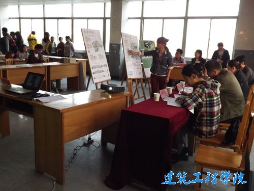 参赛者取材独特、创意无穷,分别就周村古商业街、张店区金石晶城、陶瓷馆、博大花园等地做了分析与设计,参赛者也对自己的创意做出了展板展示、PPT放映,并从空间结构、区域划分等方面一一向评委老师及同学们作出了精彩的介绍,各组选手均认真观看,互相学习。师生间的互动,参赛者的互相交流,现场气氛浓烈,掌声不断。面对选手们创新的理念、新颖的设计、积极主动的态度,老师们也对此感到阵阵欣慰。