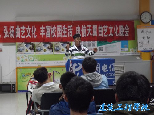 为了弘扬曲艺文化,丰富校园生活。日新曲艺社联合电信营业厅“飞Young创业社”为同学们创设了一个新的乐天派剧场。就在10月19号晚日新曲艺社于电信营业厅举行曲艺晚会。