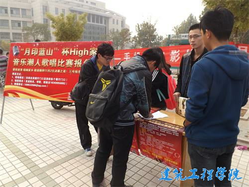 10月24日,由校社联主办、梦想家乡文化艺术协会承办的“月印蓝山”杯High家乡音乐潮人歌唱比赛正在火热报名中。梦想家乡文化艺术协会的全体成员积极配合,在各餐厅门口对此次活动进行大力宣传。