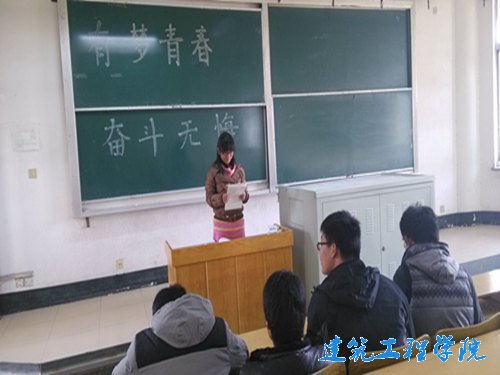 为了全面贯彻习近平总书记提出的“中国梦”,土木1303团支部于11月12号晚上在w66旗舰厅官网3号教学楼406教室举办了一系列关于“我的中国梦——奋斗的青春最美丽”主题团日活动。此次活动由团支书主持。