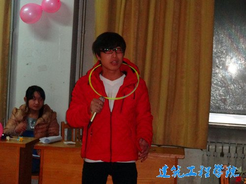 晚会在主持人的精彩报幕词中拉开序幕。晚会节目共有十四个,包括歌曲、小品、哑剧、三句半等。节目都是同学们自导自演,利用课余时间精心准备。女生们带来的歌曲串烧《不想长大》,带领同学们追寻那个属于每个人的童年美好记忆。哑剧《斗气》给同学们带来不一样的感觉,表演者的精彩表演,给现场观众留下深深印象。小品《欢声笑语》掀起了晚会的高潮,赢得观众阵阵掌声。取材于生活的三句半《戏说》笑侃公司生活,戏说班委趣事。小品《大话天仙配》再次掀起晚会高潮,现场掌声不断。由友谊班级献上的小品《新闻联播》也是引得大家笑声不断。晚会中还有同学们深情演唱的情歌,并在现场诞生了“情歌王子”和“单身王子”。精彩的才艺展示后,同学们玩“背对背拥抱”、“萝卜蹲”等游戏。游戏过程中,同学们积极参与,玩的不亦乐乎。晚会以全班同学合唱的一首《我的好兄弟》圆满结束。