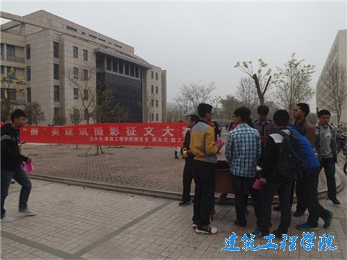 中午,建工之家社团在各大餐厅门口对活动展开宣传。宣传现场,社团成员用广播的形式循环播放了本次活动的主题。成员们幽默风趣的为驻足的同学讲述着本次活动的要求,向大家发放活动的宣传单页,并有专门人员组织同学们现场报名。各餐厅门口到处都洋溢着同学们爽朗的笑声。据悉,本次活动旨在丰富全体在校员工的课余生活,为同学们提供一个更好展示自我的平台,不论是建筑、摄影,还是文学爱好者,不需要拥有专业的建筑知识,只需一幅幅“醉”美建筑,一段段“醉”美文字便可参与到比赛中来。