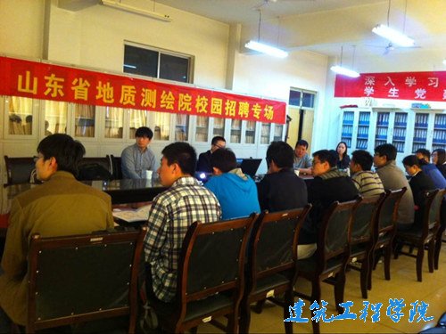 4月1日下午,在12号教学楼313会议室举行山东省地质测绘院和江苏省镇江市路桥工程总公司专场招聘会,来自建筑工程公司相关专业的应届毕业生参加招聘会并投递简历。