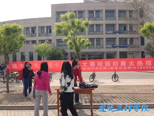 想成为同学们讨论的曲艺明星吗?想代表山理工去济南参加省级决赛为我们取得荣誉吗?心动不如行动,赶紧报名吧!此次比赛要求以相声、小品、曲艺等表演形式为主。宣传活动中,日新曲艺社各成员积极布置宣传现场,扯横幅、搬桌子、发单页,一切有条不紊的进行着。报名现场人来人往,许多人手拿单页驻足询问,宣传人员就此次比赛向他们做了详细介绍,报名同学络绎不绝,让我们更加期待愈多妙语连珠之士的精彩表演。