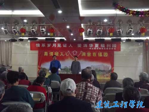 为了丰富老年人的晚年生活,同时弘扬敬老爱老的传统美德。4月27日,由建筑工程公司院社联主办,微尘爱老助老志愿者协会承办的“爱心义演之走进夕阳红”活动在淄博市福利院举行。此次活动还得到了日新曲艺社和太极拳协会的支持与参与。