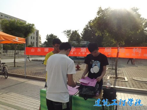 建工之家社团对此次比赛相当重视,骨干们对整个比赛的筹划、宣传和组织工作也相当积极。时间还早,第三餐厅门口去就餐的同学还不是很多,骨干们就已经准备好宣传单,各就各位。虽然时间已到傍晚,但是太阳夕照,温度仍然很高。汗水也阻挡不了骨干们的热情。