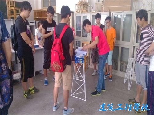 为了鼓励老员工发挥团队精神,综合运用工程力学等理论知识进行设计创新,提高老员工的创新、实践和协作能力。6月5号下午,由建工之家社团主办的结构设计初赛在本校西校区12号教学楼116教室举行。参加此次活动的有建工之家社团团长孙振,建工之家社团的各位干事以及参赛的各组成员。