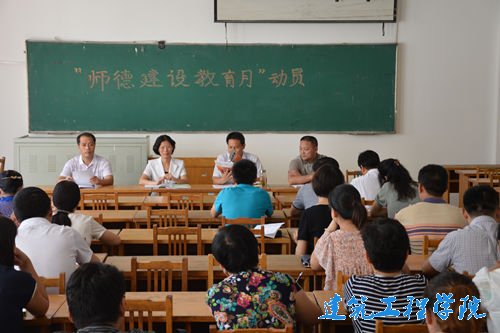 为落实公司关于师德建设教育月的文件精神,建筑工程公司于9月4日下午在12号教学楼311教室召开“师德建设教育月”动员大会。党总支书记李新红、公司经理贾致荣及公司全体教职工参加此次大会。