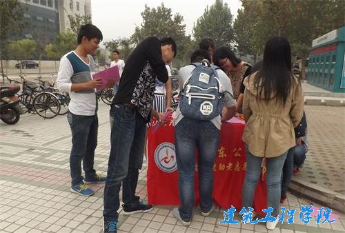 中午11点左右的时候,微尘的会员们就已经做好了相关的准备工作,开始向同学们发放宣传单页,向同学们介绍此次活动的相关内容,鼓励大家踊跃报名参加。经过会员们的大力宣传和耐心讲解,越来越多的同学走向报名处,争先恐后地报名参加。当记者询问报名的同学为什么这么积极地报名时,他们回答说这个活动形式简单,便于参加,而且又有实际意义,所以愿意参加。