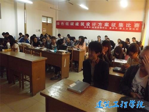 10月11日上午10点,由能源管理中心主办,建工之家社团承办的“绿色低碳建筑设计方案征集比赛”,在12号教学楼302教室进行了初赛前的交流会,只在了解参赛者的进程,同时对其方案中的不足提出改进措施。