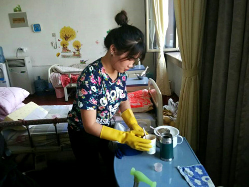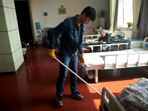 到达养老院工作人员开始安排任务和所需要注意的事项,工作人员耐心的给我们讲解应该如何去对待老人,同时要对老人保持微笑和耐心的态度,志愿者们早已把工作人员的话铭记于心,不同的房间需要不同的志愿者,志愿者们在房间中认真的打扫卫生,擦桌子,整理床铺,有时还与老人聊聊天,看到老人们脸上露出微笑,志愿者们也感觉心中盛开甜蜜的花朵。到了午饭时间,老人们要依次用餐,志愿者用轮椅把老人推到食堂,老人们开始享受这用餐时间。