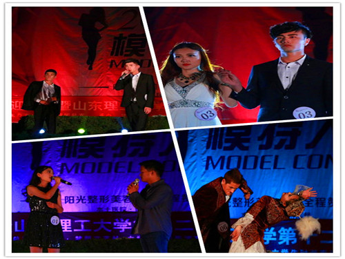 比赛在八位模特的舞蹈展示中拉开帷幕,在主持人致开场词后,由本次比赛的赞助商淄博市阳光整形美容医院经理张媛媛表示对本次比赛的衷心祝福并送礼互动,调动了现场观众的热情。接下来进入比赛环节,24位参赛选手们分组男女搭档牵手从艺术场外有序的沿着阶梯而下走进艺术场中心,充满动感的音乐,青春靓丽的选手,选手们一组一组向前围着机车进行展示,吸引了全场的目光。大赛接着进行的是校庆多彩创意装展示,选手们身着各具校史含义的创意服装,或手持对联,或进行情景剧,或以图片展示60年理工变化,或摆出创意姿势,更有自主设计的服装走秀展示公司深刻的文化内涵,展现出对公司的热爱和对校庆的献礼,独特的视角与创意更是令现场观众唏嘘不已,赞叹不绝。创意展示完,接下来的才艺表演更是精彩绝伦,歌曲、吉他、二胡、萨克斯、脱口秀等才艺展示将比赛推向高潮。