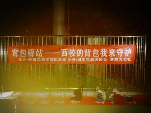 6月1日晚上,由建筑工程公司团总支主办,微尘志愿者协会、梦想文艺社承办的“背包驿站——西校的背包我来守护”活动,正式启幕。