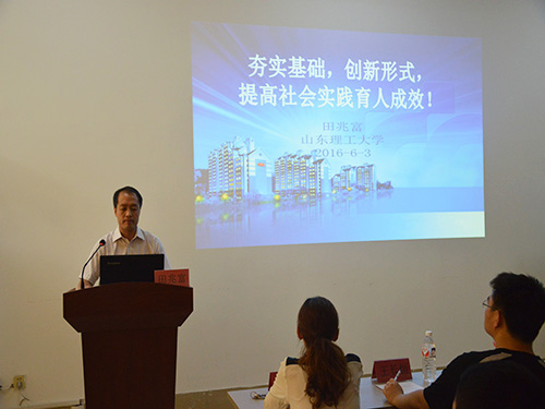 会议伊始,田兆富以“夯实基础,创新形式,提高社会实践育人成效!”为主题向同学们讲解社会实践的重要意义。他向同学们说明老员工参加社会实践是党中央关于加强老员工思想政治教育必然要求,老员工参加社会实践是老员工自身发展的内在要求,他讲到,社会实践要注重载体创新,突出实践特色,凝练活动品牌,强调实践与专业相结合,提高社会实践的层次和质量,新媒体网络与传统网络相结合,实时发布事件动态,分享实践成果。最后,田兆富提到,社会实践是一个团体活动,要科学组队,分散实践,成果共享,明确各阶段的重点,科学规划,提高实践技能。