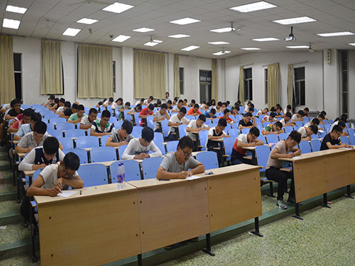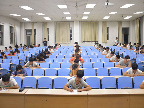 为加强新生对校规校纪的认识,提高同学们的自律意识,9月16日晚,建筑工程公司于4号教学楼101、103、105、201、203、205、303教室同时进行新生入学《员工手册》考试,2016级全体新生参加此次考试,辅导员徐藤对各个考场进行巡查,带班学长学姐担任监考。