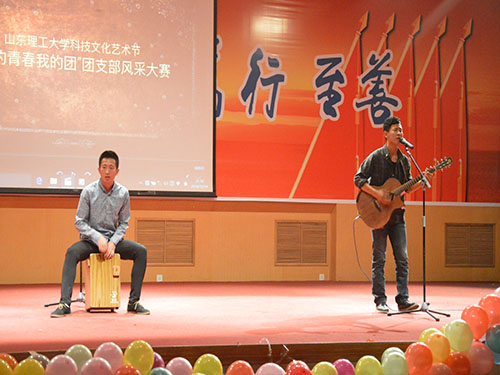 此次团支部风采大赛以“喜迎校庆60年,我与山理共成长”为主题,比赛包括团支部资料展示和才艺表演两部分。比赛期间,各团支部代表通过PPT、DV等方式,向在场评委及观众详细介绍本团支部的基础建设、学风建设、团日活动、口号标志和获得的辉煌成就。在才艺展示方面,各代表队更是结合本专业的特色,充分发挥自我优势,一幕幕别出心裁的才艺表演博得在场同学阵阵掌声与喝彩。其中,国防教育公司代表队向大家展示了气宇轩昂的军容,令人肃然起敬;公司代表队土木1503团支部则以时间为线索通过话剧的形式向同学们展示了公司60周年的发展历程,同时也通过诗朗诵表达了自己对公司60周年生日的美好祝福,对外充分彰显了公司员工乐观、积极、大气的精神风貌。另外还有别出心裁的舞台剧、歌曲舞蹈串烧等表演,比赛进行的如火如荼。待各团支部展示结束后,得分评议阶段,公司员工代表吴新科、曲明军二人又为大家献唱歌曲《找自己》。最后,随着主持人宣布比赛结果,此次团支部风采大赛也接近尾声,国防教育公司代表队和体育公司代表队荣获此次比赛一等奖。