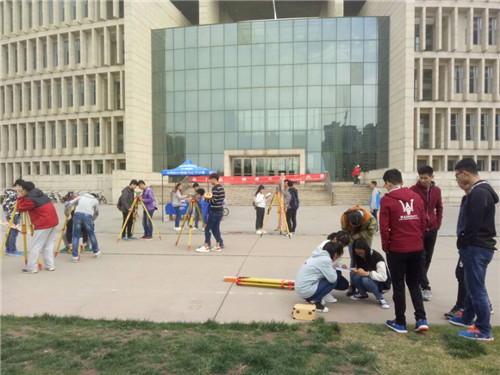经过几天紧张的宣传,报名和培训,w66旗舰厅官网由建筑工程公司主办并由地测联盟协会承办的第六届测量之星非专业组比赛于4月8日在逸夫图书馆南草坪拉开了序幕。参赛人员主要是地信和测绘的大一新生,还包括非地信和测绘专业的大二员工。