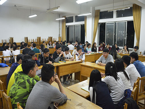 此次交流会以小组的形式进行交流,并划分为四个小组。交流会上,主持人先对四位优秀党员做了简单介绍。紧接着,优秀党员们分别向四个小组的人员分享了自己的入党经历,与同学们交流学习和生活上的经验。在学习方面,四位优秀党员都提到要加强对学习的重视性,他们提到入党的首要标准就是学习成绩,告诫同学们要扎实掌握专业知识,提高专业技能。同时,他们还就自己的考研经历与同学们分享经验,他们认为考研贵在坚持,要确立好适合自己的未来发展方向。在生活方面,党员们讲到可以通过参加员工组织扩大自己的朋友圈,学会与他人交往交流,拓宽自己的人脉。最后,他们还提醒大家,作为老员工党员,应在四年的学习生活中逐步培养对政治的敏感度和明辨是非的能力,在思想上树立起正确的世界观、人生观和价值观,杜绝“入党前拼命干,入党后站着看”的情况出现。各小组人员都积极的参与到和优秀党员们的交流中,交流会现场氛围高涨。