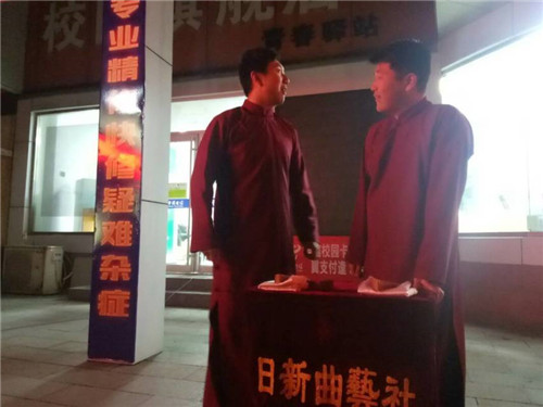 4月16日,日新曲艺社为庆祝社团建立十五周年,于公司第三体育场西侧电信营业厅附近举办十五年社庆优秀精品曲艺节目展演。参与此次日新曲艺社表演的既有大一新血液、大二的骨干,更有大三,大四的元老级老戏骨,前来观看观众更是挤满了营业厅前的空地。