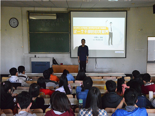培训伊始,岳松以“论一个干部的自我修养”为主题向同学们介绍员工干部,并以“学习—思考—实践”为切入点引入正题。他从两个角度讲解了骨干的含义:从动词来讲“骨”是支撑,“干”是做事;从名词来讲“骨”是立场,“干”是主体。一方面,他表示员工骨干要让优秀成为一种习惯,要学会从俯视全局、移形换位、挖地三尺、瞻前顾后四个维度去思考问题,对人、对钱、对事都要有不同的处理方式。另一方面,他就自身人生体验着重讲解了为人处世的方式方法:一善于从不同角度思考问题,这样才能成为一个考虑周全的人;二永远都不要用动机去解释结果,近朱者赤,近墨者黑;三学会正确的比较,擅于比较才会感到幸福;四脸熟是个宝,广泛的人脉很重要;五不要随意鄙视别人,要学会尊敬和学习;六做事不要靠运气,先吃苦后享福的观点是错误的,退而求其次的想法是很要命的。他以幽默的口吻将为人处世的方式描述得淋漓尽致,并赢得了同学们的热烈掌声,他特别强调自己所讲的并非鸡汤,而是切实可行的方法,并希望同学们可以认真做好员工干部这份工作,从“干部狗”改为“干不够”。