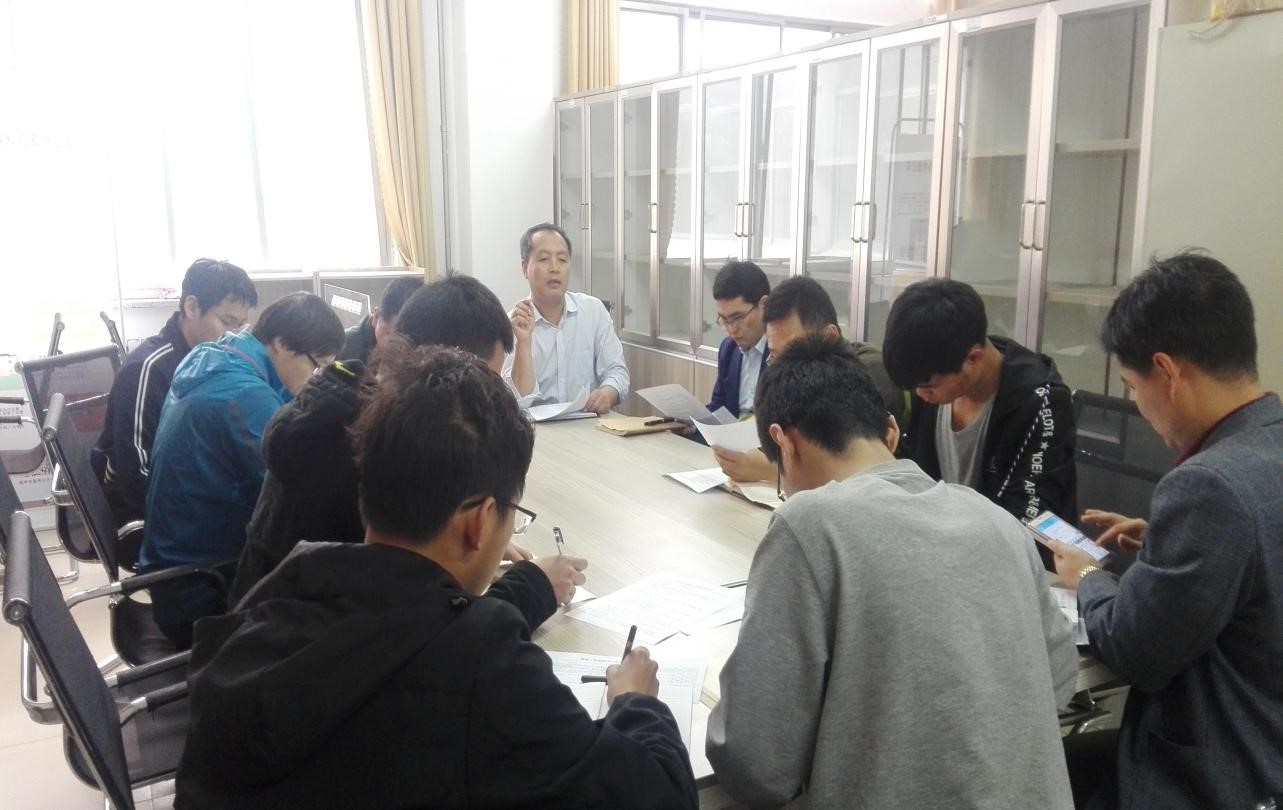 4月26日上午,建筑工程公司在12号教学楼321教室举行老员工专业技能竞赛工作专题会议,会议由公司党总支副书记兆富主持,各系分管老员工专业技能竞赛的老师以及社团联合会相应负责人参加会议。