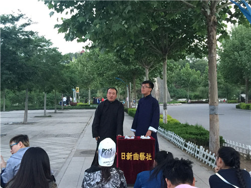 2017年5月6日由中公教育冠名赞助的日新曲艺社“迎接十九大,逐梦社团人”社团文化广场活动暨日新曲艺社十五周年社庆优秀精品曲艺节目系列展演在w66旗舰厅官网第三体育场举行,参加此次活动的成员有日新曲艺社全体骨干。