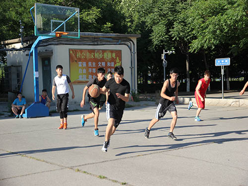 本着友好、拼搏的精神,比赛在裁判清脆的哨响中拉开帷幕,高高抛起的篮球点燃了比赛的激情。比赛开始,精神抖擞的队员们摆开姿势,开始激烈的抢球,断球,防守,进攻模式。比赛过程中,公司的篮球场上充满了一幅幅灵动的画面:一声声激动的呐喊声,一个个跃动的身影,一个个胜利的微笑,一次次沮丧的叹息……高高的跃起,快速的奔跑,漂亮的抢断,完美的过人,优美的投篮,勇敢的抢球,构成了一幅幅激动人心的画面。毕业生运动员们凭借其娴熟的球技、矫健的动作和超强的默契,一直遥遥领先,充分体现出其赛场经验的丰富,当然,后生代表队也不甘示弱,利用短暂的暂停时间迅速调整心态,调整状态,积极应战,加强逼抢。