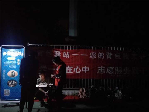 阳光正好,微风不燥。5月25日晚,在这酷夏季节鲜见的凉爽日子里,微尘志愿者协会本着“我守护背包,你放心奔跑”的精神,在第二体育场举办背包驿站活动。当晚参与此次活动的有微尘志愿者协会成员苏斐然、董国晓以及其他志愿者。