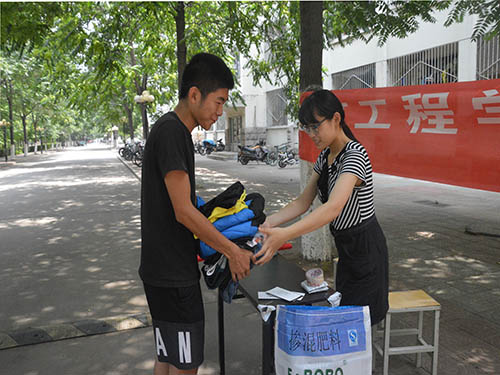此次活动旨在呼吁毕业生捐赠旧衣物、旧书籍、旧生活用品,为贫困儿童送去一份温暖。活动开始,宣传条幅一挂出便吸引了大批同学上前询问,负责接待的同学毫不懈怠,细心为每一位前来询问的同学解答。在了解了此次活动的目的后,同学们主动回宿舍整理不常用的物件前来捐赠,并自发向身边的同学宣传此次活动,动员身边的朋友前来爱心捐赠。此外,负责接待的同学还为捐赠者准备了写有温馨话语的明信片,留给捐赠者一份纪念。一位前来捐赠书籍的同学说,奉献爱心是不求回报的,一本书当作废品卖掉确实能买几毛钱,可知识是无价的。负责接待的同学们也纷纷表示,可以为他人的幸福奉献一份力量也是自身的荣幸。